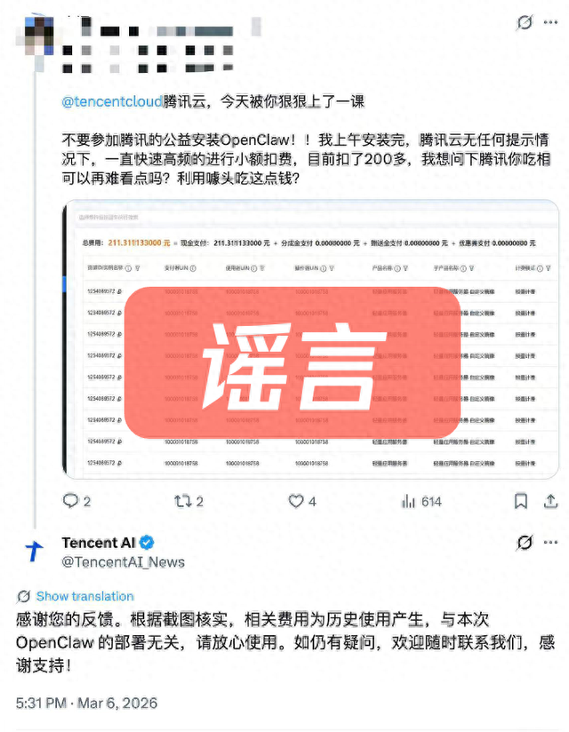 经后台排查及核实,这200多元其实是这名用户此前的历史模型调用费用,与腾讯公益装机活动并没有直接关系。腾讯云提醒,OpenClaw安装本身是免费的,但如果在使用过程中调用大模型,就会产生token费用。目前基本所有Agent工具都是类似情况。
