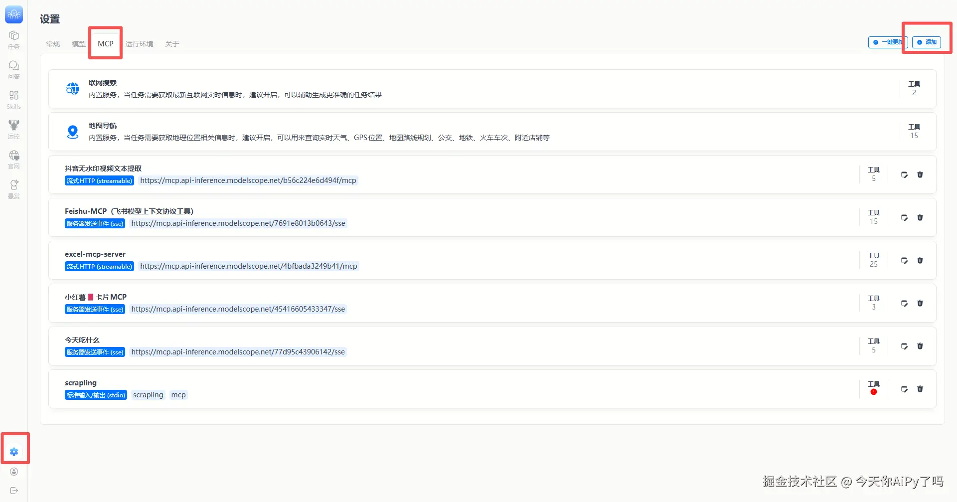 还提供有配置MCP功能,用户可以自己配置MCP,扩展AiPy能力(去哪里找MCP?去魔塔)