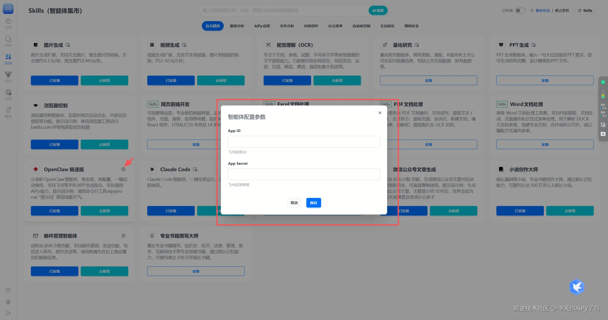 Skills 市场一键安装 OpenClaw 极速版智能体,安装完直接运行,零门槛上手!