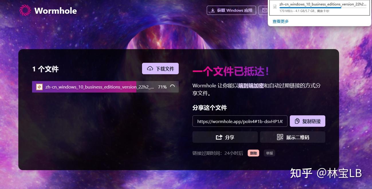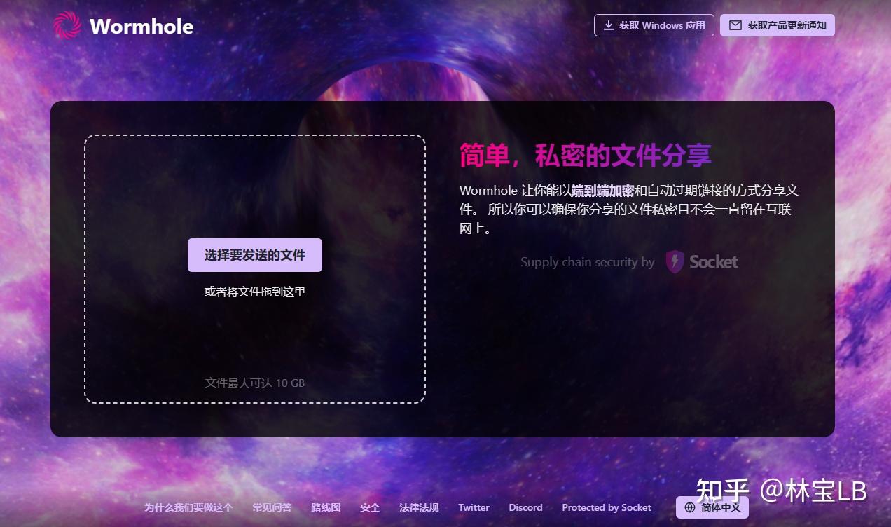 所以我也推荐下wormhole(虫洞),并且文件最大支持10GB(上传的动画十分酷炫)