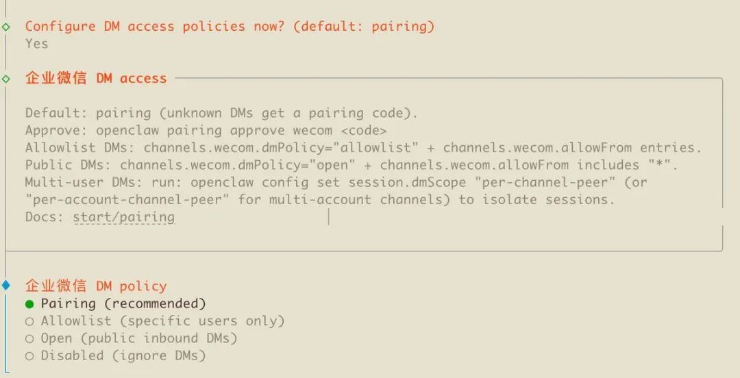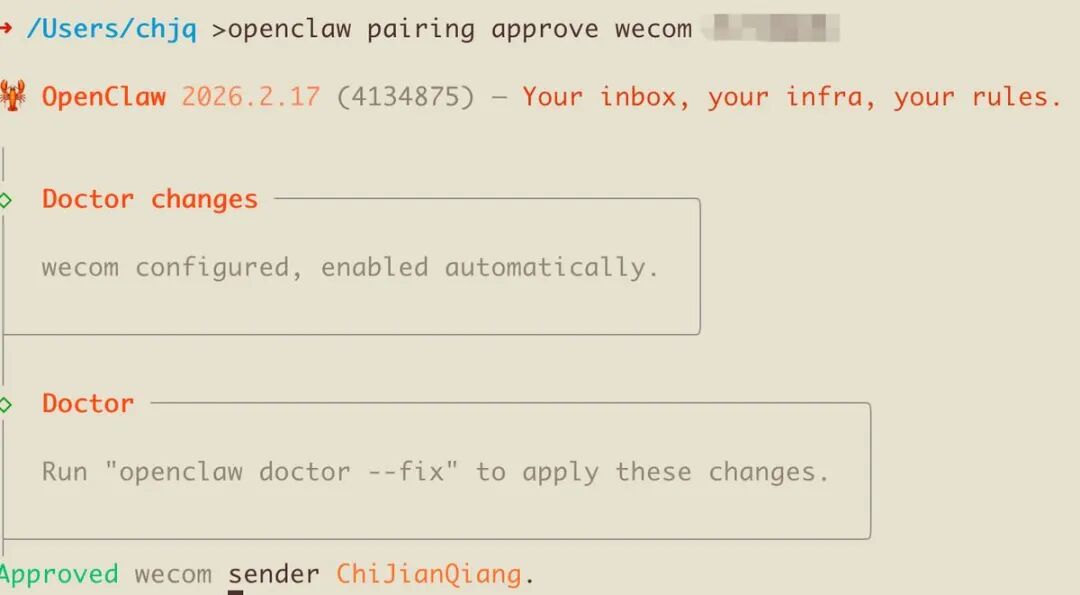 openclaw pairing approve wecom xxxxxxxxx