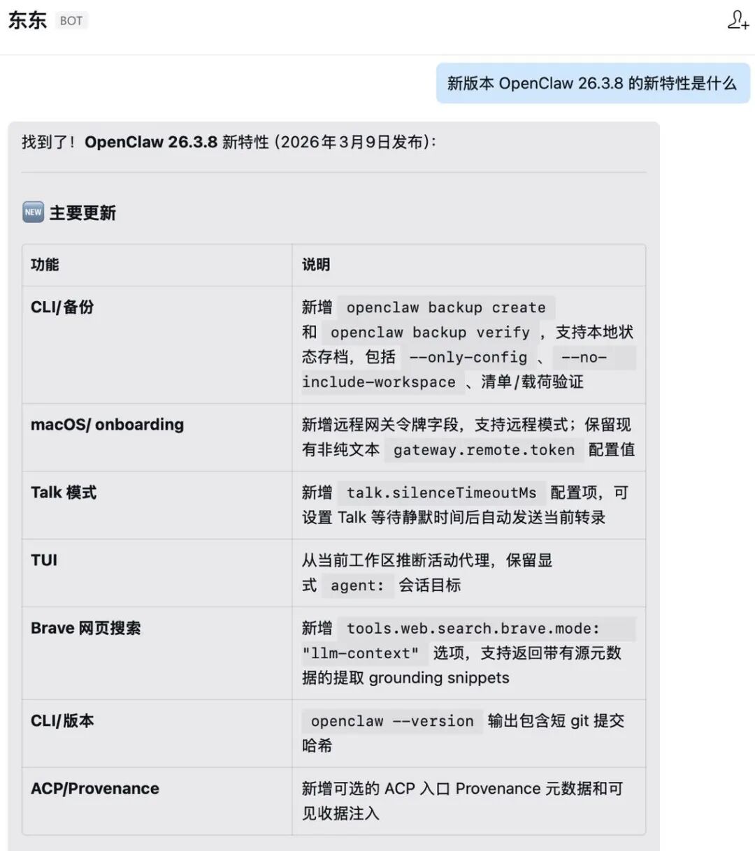 新版本 OpenClaw 26.3.8 的新特性是什么?