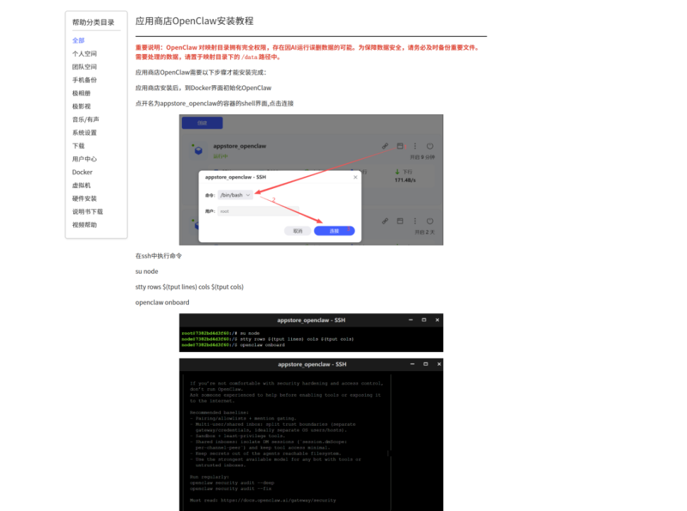 在安全保障层面,极空间采用Docker或虚拟机部署OpenClaw,实现与宿主机系统的完全隔离,即便AI出现误操作,也无法破坏核心系统和重要文件,从根源上杜绝隐私泄露和数据丢失风险,彻底解决OpenClaw“裸奔”运行的安全隐患。在使用体验层面,极空间专为7×24小时不间断运行设计,低功耗、低资源消耗的特性,让OpenClaw能全天候待命;搭配其成熟的远程访问和内网穿透技术,用户无论身处何地,都能随时管理和调用AI智能体。多元玩法:解锁私有化AI的更多可能极空间不仅为OpenClaw提供了稳定的运行载体,更通过优化部署流程,让AI的使用场景变得更加丰富。目前极空间已在外测阶段上线应用商店版本的OpenClaw,大幅简化安装配置步骤,后续还将推出一键部署功能,让零基础的小白用户也能轻松上手,省去了市场上动辄数百元的远程部署费用。