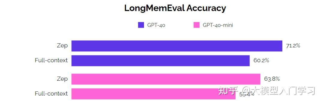 可以看到,相比基线方法,Zep 不仅提升了结果的精度,而且将响应时间减少了约 90%,相比其他 LLM 供应商也有约 80% 的提升。