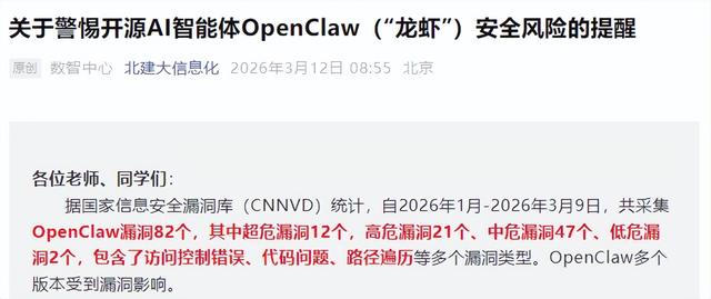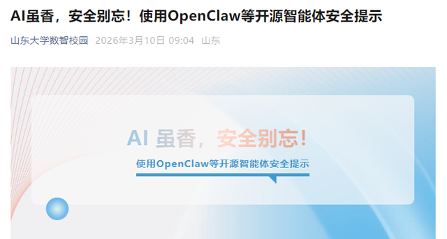 全校师生应结合自身实际需求理性看待该工具,切勿因跟风心理盲目安装、部署“龙虾”AI智能体,尤其避免在接入校园网的设备、办公电脑、存储有个人敏感信息和工作数据的设备上使用。
