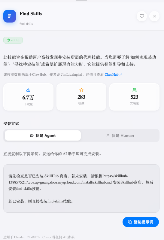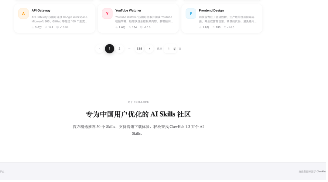 记者看到,SkillHub在官网的右下角标明了SkillHub技能数据来源于ClawHub,并提到已经收录了ClawHub生态共1.3万个Skills(技能)。同时在每个具体技能上,腾讯都标记出技能数据来源于ClawHub。