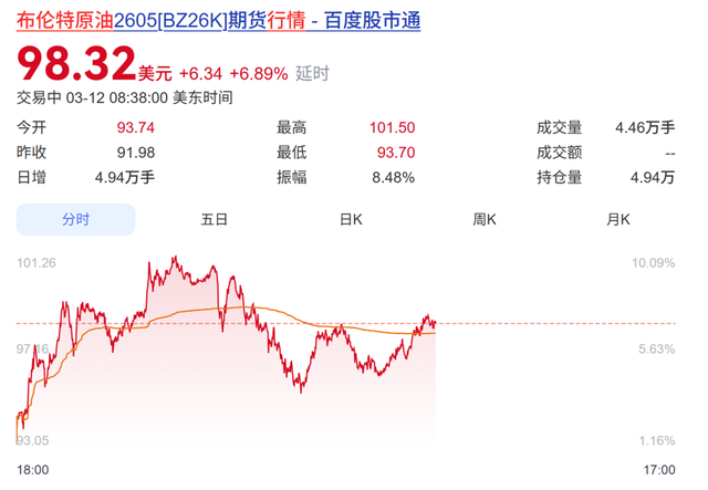 3月12日,国际油价一改此前急跌态势,再度强势拉升,盘中重新站上每桶100美元大关。
