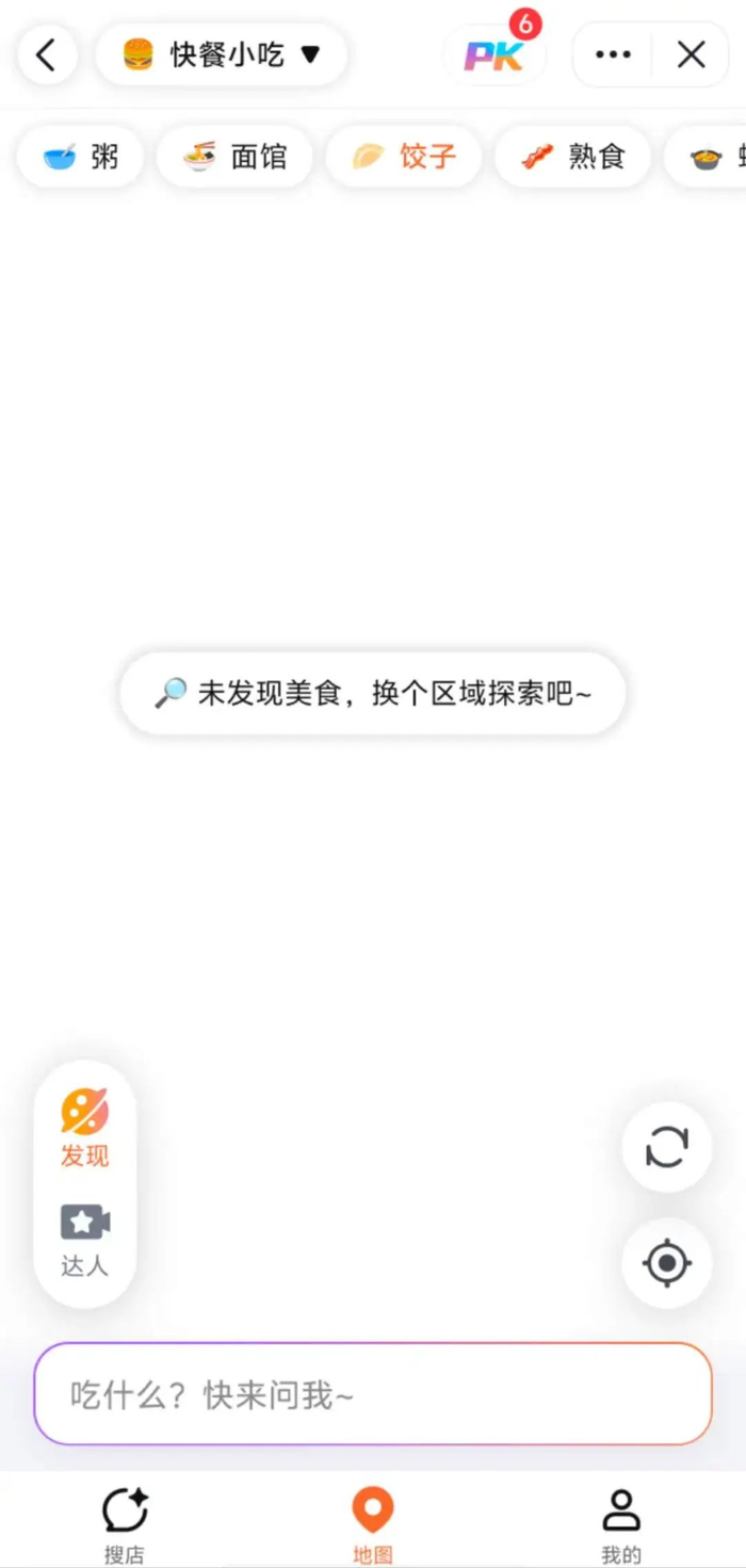 探饭还支持地图找店,可以在地图上寻找美食店(注:笔者附近暂没看到美食店),确定好店铺后可以进行导航,导航需跳转至高德地图。