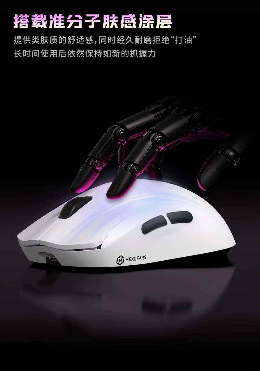 黑峡谷 H9 内置 400mAh 电池,底部有铁氟龙脚贴,鼠标尺寸约 126.5×63×40mm。
