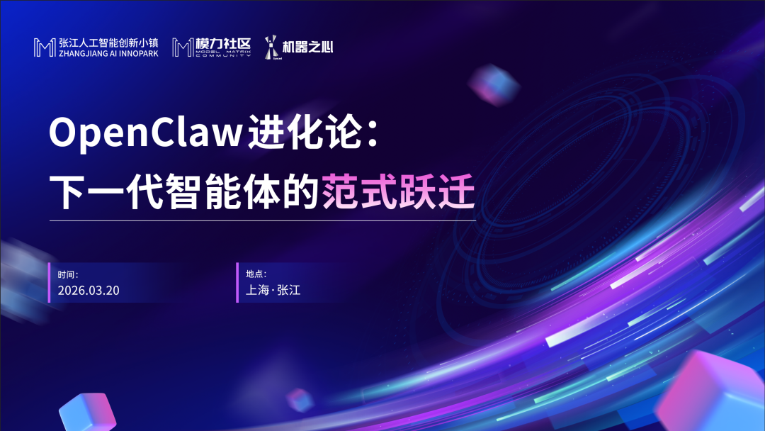 值此节点,由机器之心、张江人工智能创新小镇、模力社区共同主办的「Openclaw 进化论:下一代智能体的范式跃迁」闭门会,将于 3 月 20 日在上海·张江举办。希望在足够多的「养虾大会」之后,这场闭门交流能够超越 OpenClaw 现象本身,深度剖析其背后的技术原理、协作范式、工程实践乃至商业闭环,为下一代智能体的范式跃迁,探寻真正具备前瞻性与穿透力的答案。