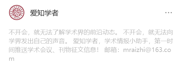 “爱知学者”会第一时间推送各种学术会议、刊物征文信息,并详细分析选题热点、投稿要求等。想获取各学科相关的期刊与会议征稿信息,可以多关注这个公众号!