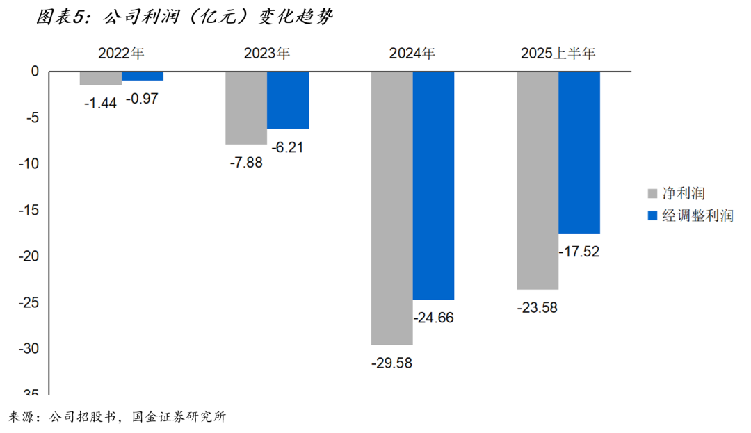 •净利润:公司的年内亏损从2022年的1.44亿元增加至2024年的29.58亿元。2025年上半年的净亏损为23.58亿元,较2024年同期的12.36亿元增长约90.83%。净亏损的增加主要由于公司在研发方面进行了重大投资,以支持先进模型的开发和基座模型的持续改进。
