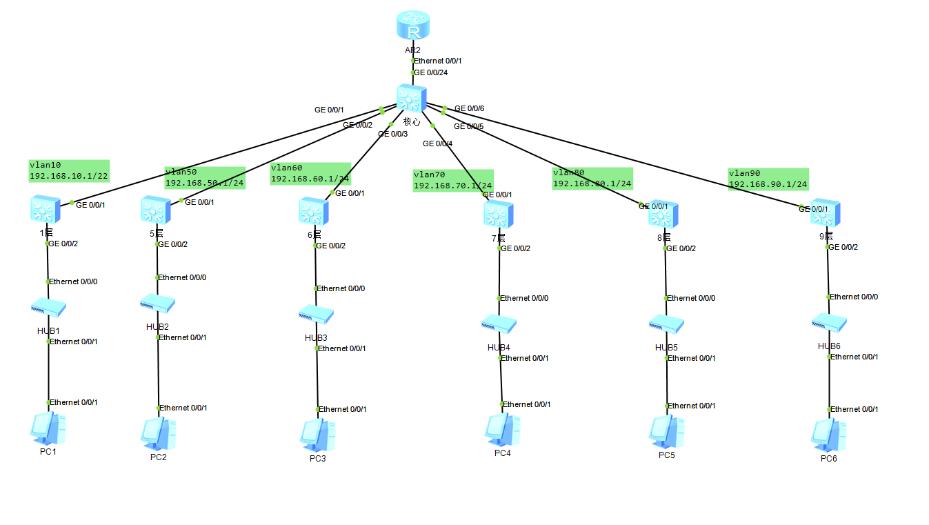 vlan10可以与任意通讯,剩余之间互相不能通讯