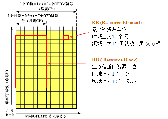 2.每个子帧包含两个时隙,每时隙长0.5ms