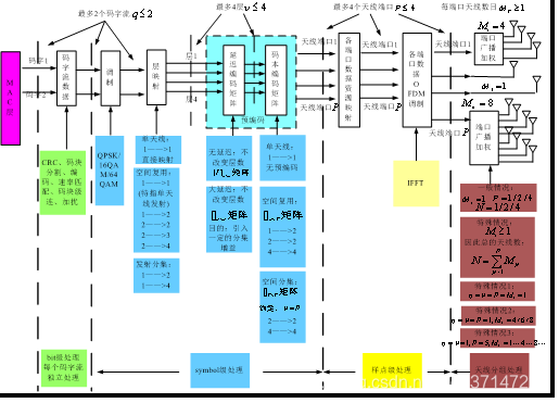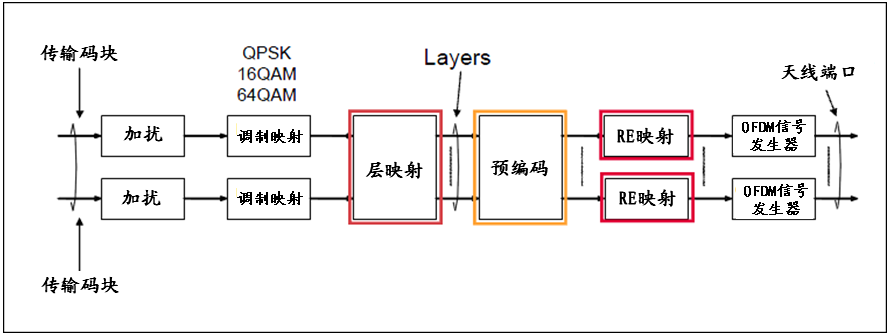 码字到层的映射只允许有1:2和1:4,即一码字流映射至两层或四层 。