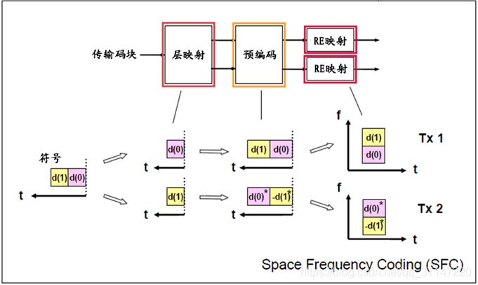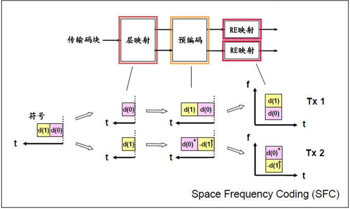 空频发射分集与空时发射分集类似,不同的是SFTD是对发送的符号进行频域和空域编码