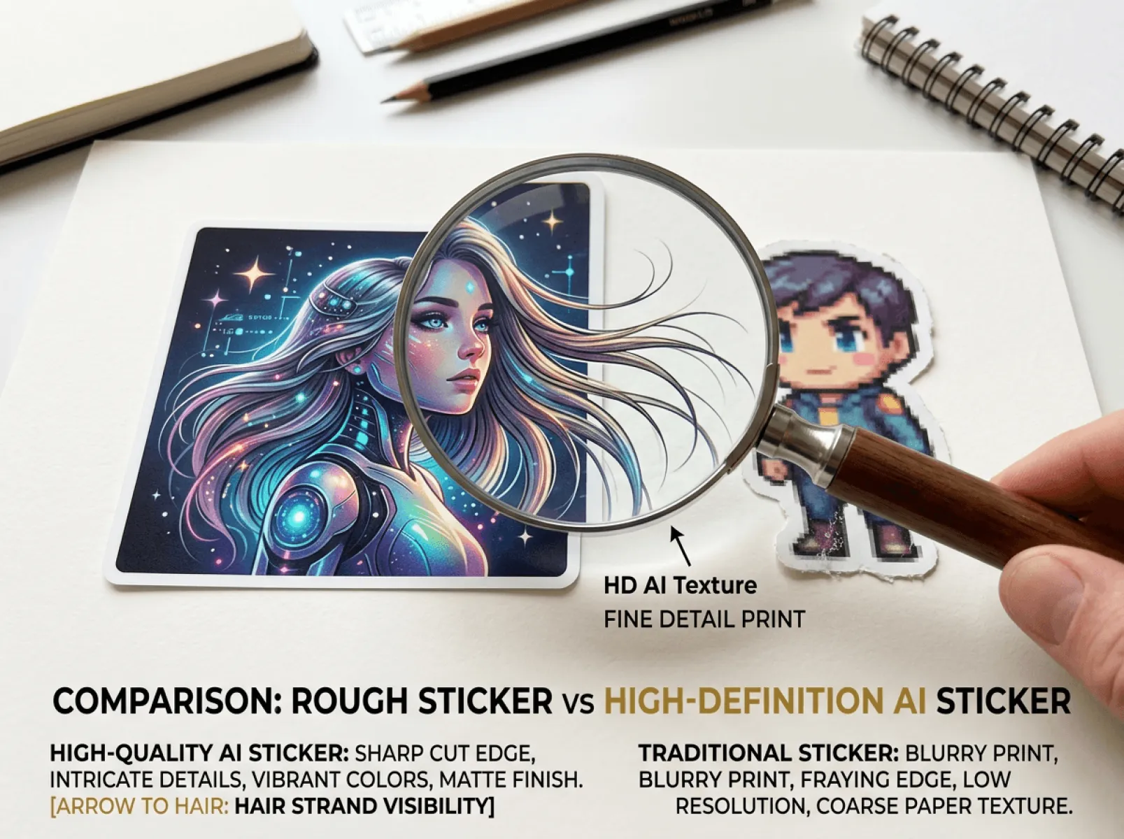 细节与品质是AI贴纸的核心竞争力,优质贴纸需边缘、发丝、色彩、文字细节细腻,才能无缝适配各类场景。传统工具细节短板明显,边缘模糊、色彩失真等问题使其难以用于商业场景。而Nano Banana 2凭借多尺度特征融合等技术,实现行业领先的细节精度,为Fast Image AI提供全方位支撑,让贴纸达到专业设计级水准。