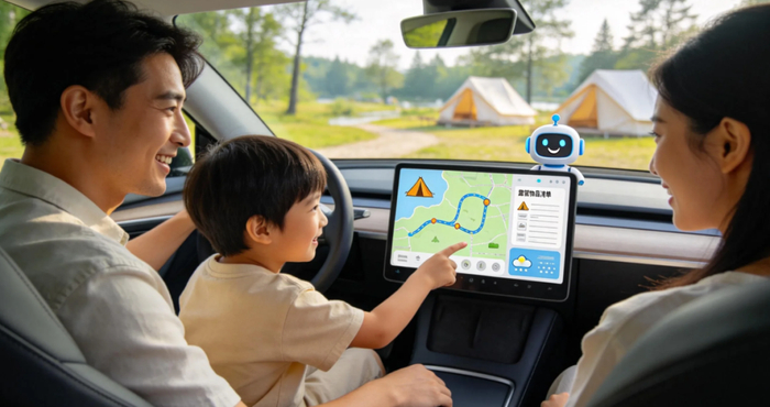 想象一下这个场景:周末早上,你坐进车里,随口说一句:“想带家人去郊外露营,帮我规划下路线、推荐个营地,再提醒下要带啥东西。”