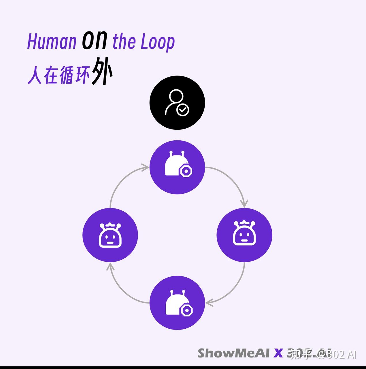 由此诞生这种「人 – AI – AI – AI – ….」的新逻辑,称之为 Human on the loop(人在循环外)。人类只需设定一个初始目标,后续的所有步骤都由 AI 自主循环完成。
