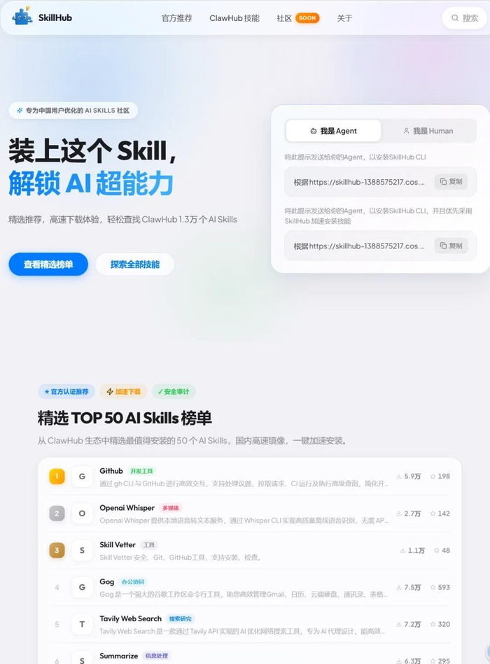 此外腾讯专门为中国用户打造的SkillHub正式上线营业,包含13000多个龙虾技能。