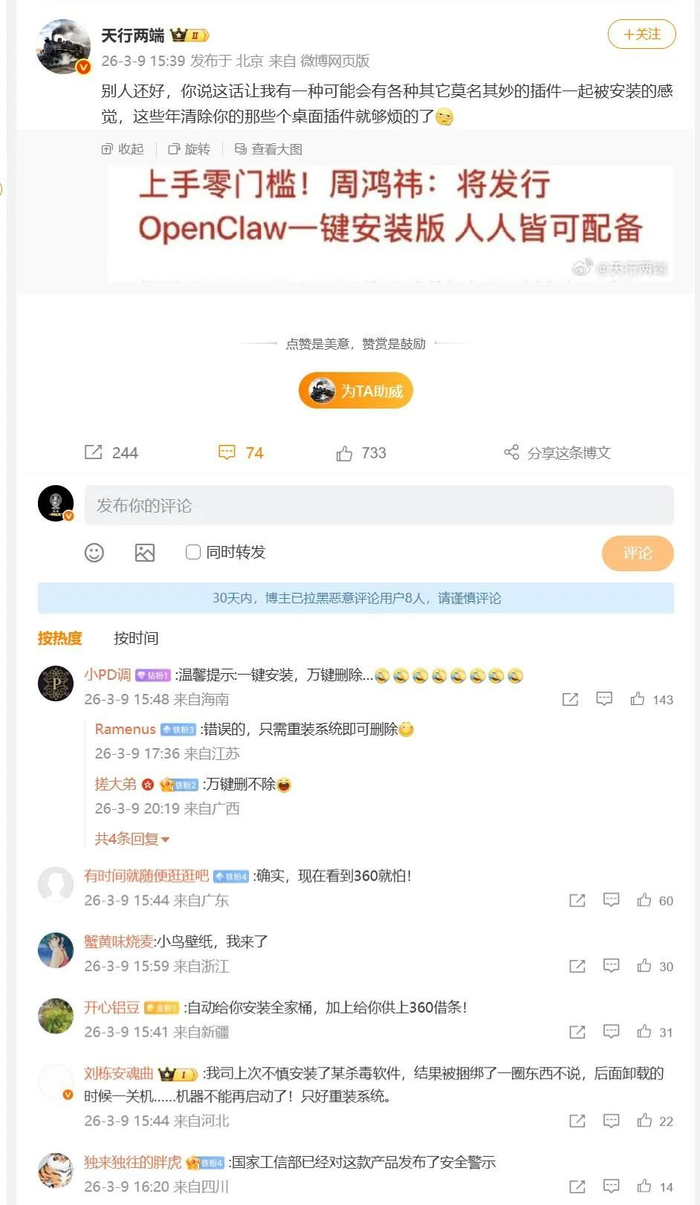 但是在这波openclaw的浪潮中,360的反应速度确实一般。