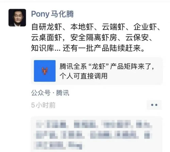 尤其是腾讯,据马化腾朋友圈内容显示,腾讯已经开启了龙虾全家桶的节奏。