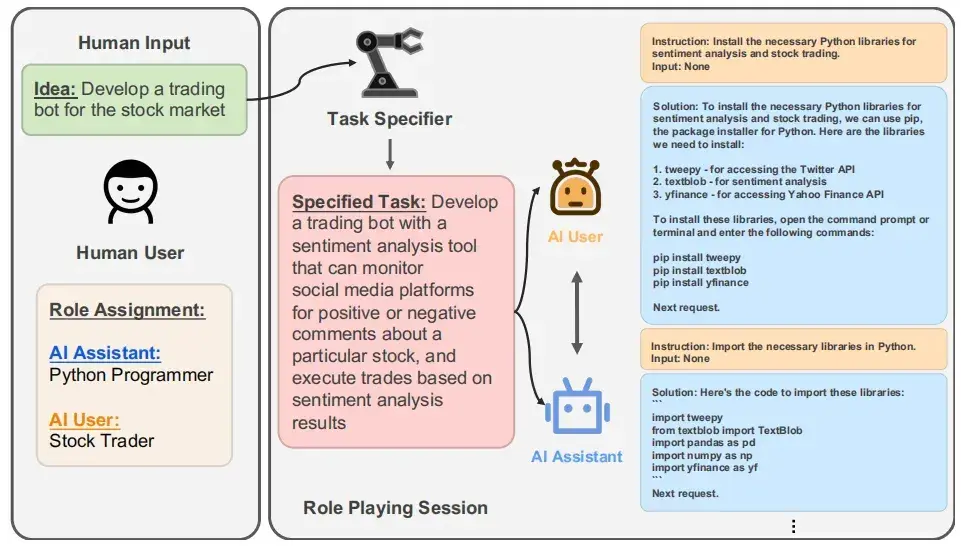 git: https://github.com/camel-ai/camelsite: https://www.camel-ai.org早期Multi-Agent项目,实现agent间的一对一对话,文档较少,除了git和一个站点外没有找到太多有用信息。