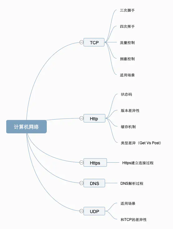 计算机网络中常问的方式是从浏览器中输入百度到页面返回的流程,顺着这个流程拓展出来DNS解析,TCP连接,Http,Https。