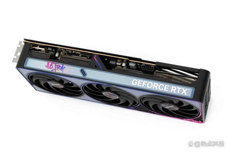 整张显卡采用蓝粉色渐变线条精致勾勒,顺着显卡的轮廓自然延展,如霓虹般环绕机身,为冷峻的黑色基底注入了潮酷的嘻哈艺术以及律动氛围感,青春气息拉满。