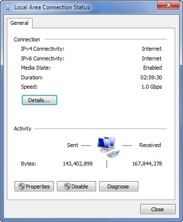 Windows 下可以通过右键对应的网络适配器,打开连接状态查看
