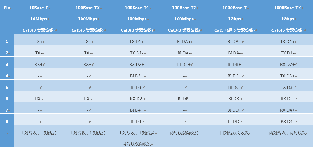 于是,就产生了许多种物理层的规范,找了个表格,可以参考一下: