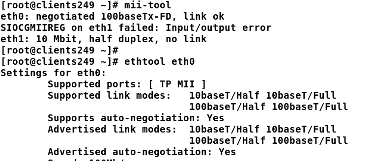 Linux 下可以通过 mii-tool -v eth0 或者 ethtool eth0来查看