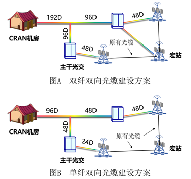 由于单纤双向占用的纤芯数较少,原有宏站的接入光缆纤芯多半能满足接入需求,所以,配线光缆(主干光交~宏站)的建设量通常只有双纤双向方案的一半左右。