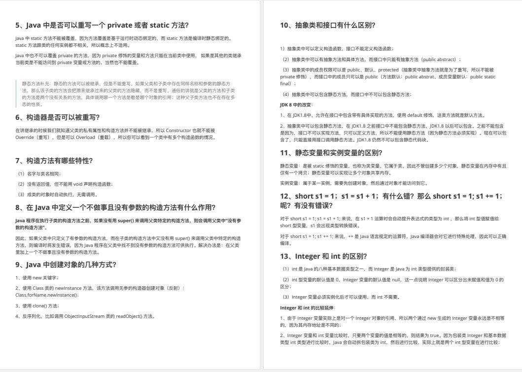 对于Java的学习,很多⼈可能学了之后,不知道⾃⼰处于哪个阶段,也不到究竟要学到哪个程度,验证⾃⼰学得如何最好的⾯试,就是尝试去⾯试,⽽⾯试⽆⾮就是问你⼀些⾯试题,所以呢,小编整理了这些 Java ⾯试题,从 Java 基础,集合,并发到虚拟机,并且附带了详细的答案,⽆论是想⾯试还是想看看⾃⼰学得如何,那么这份⾯试题,都值得你去学习。