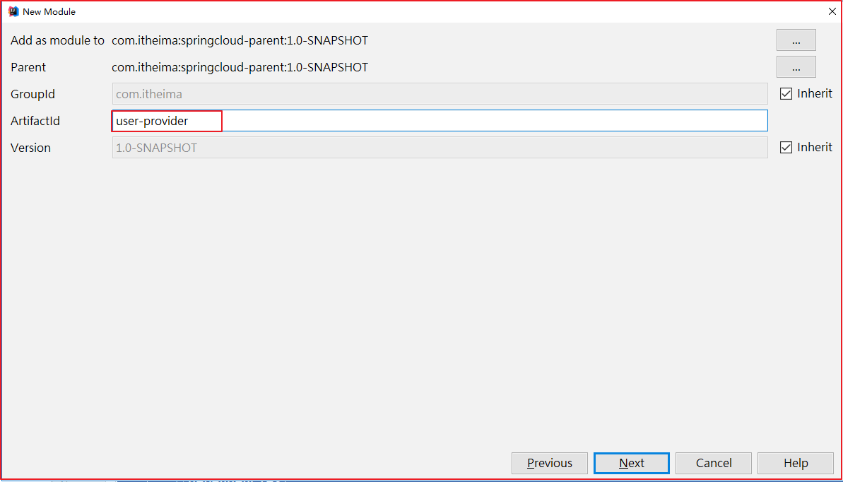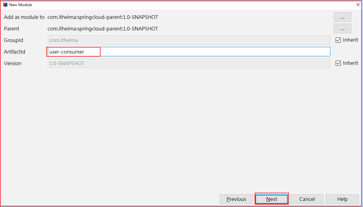 选中springcloud-parent工程->New Modul->Maven->输入坐标名字,如下步骤: