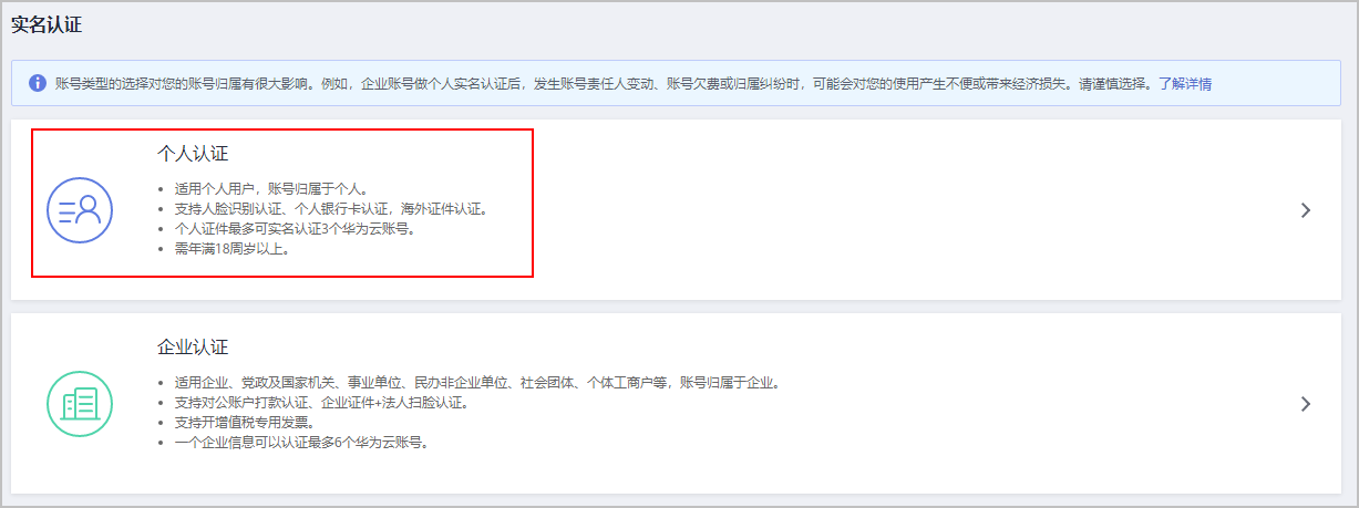 华为云支持个人实名和企业实名,下面就由我们系统讲解一下。