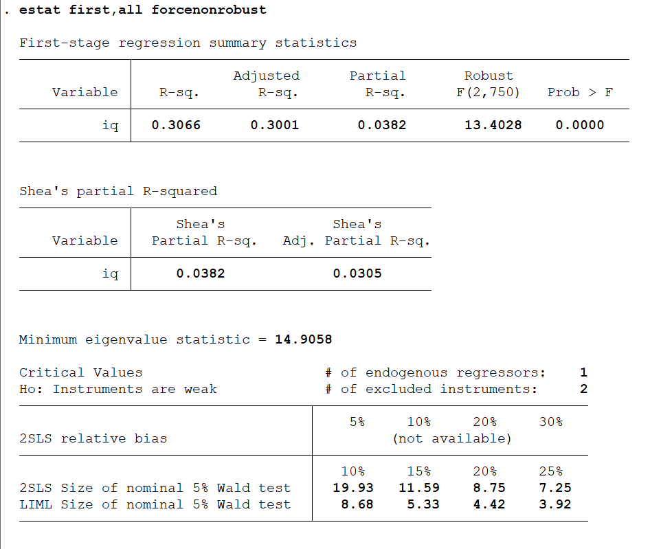 estat firststage,all forcenonrobust