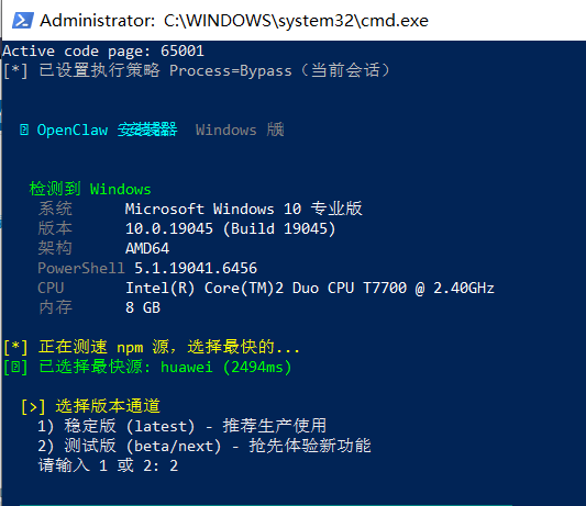 脚本执行后会先自动配置 npm 国内源: