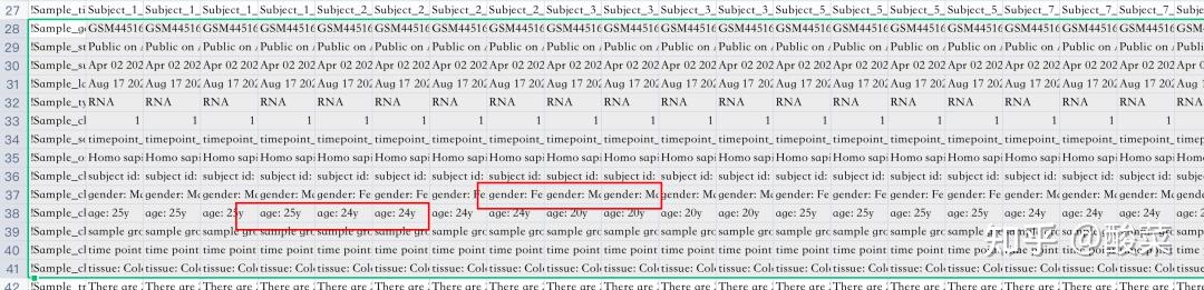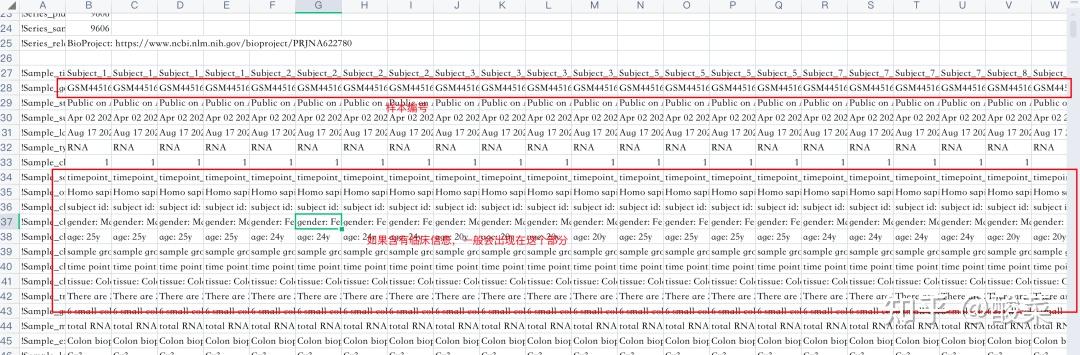 在文件的头部,样本编号的下方,如果作者有提供每个样本的补充信息,则会出现在上图中框住的部分。