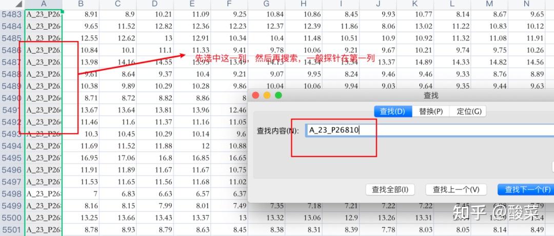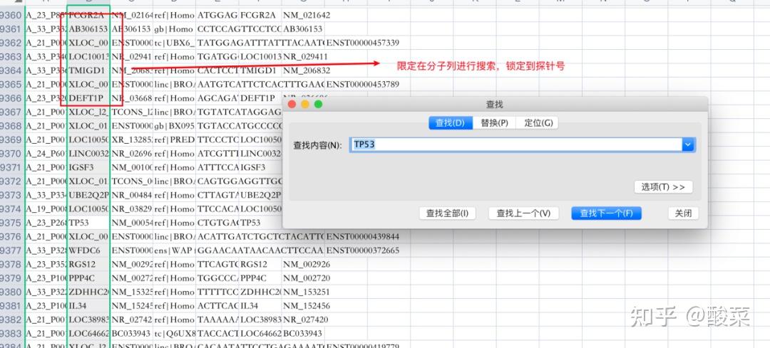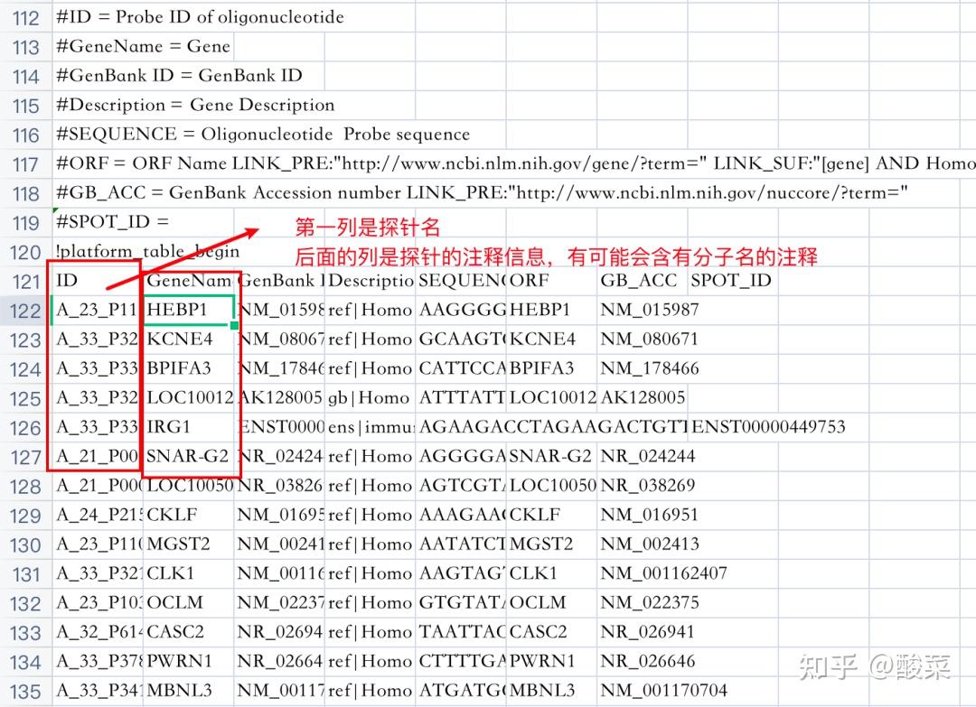 在GPL文件(探针-分子)中,先找到分子对应的探针号。