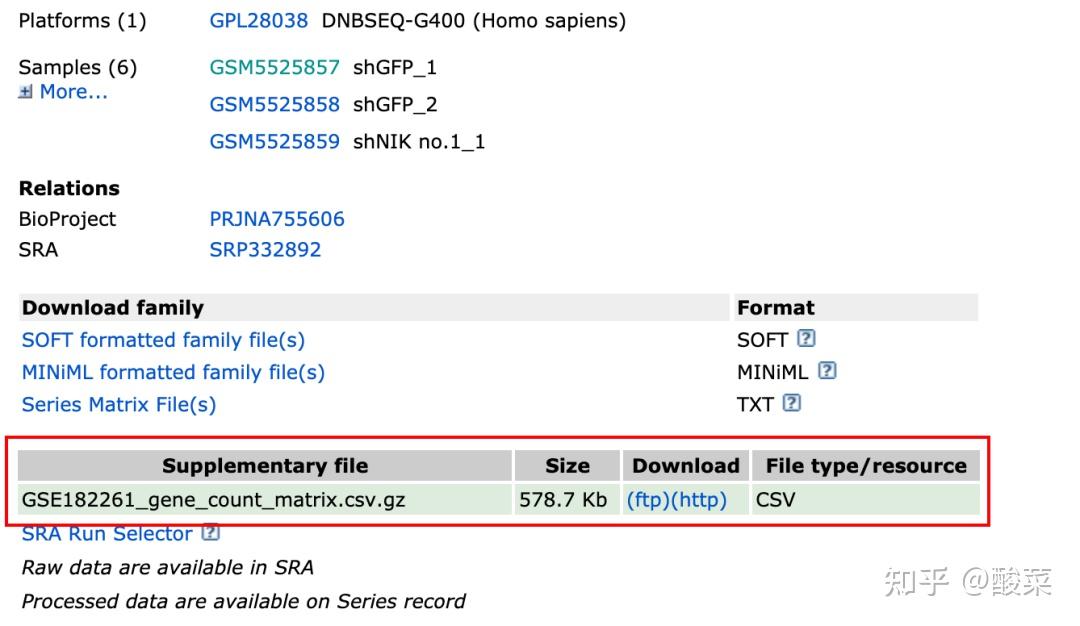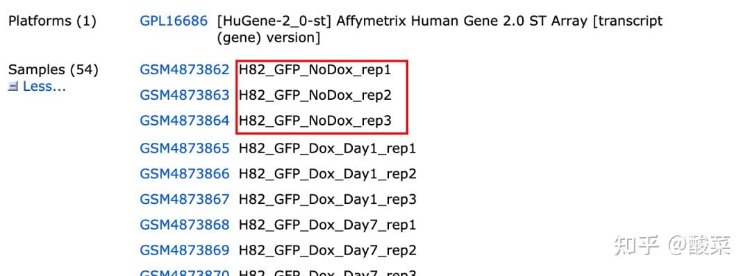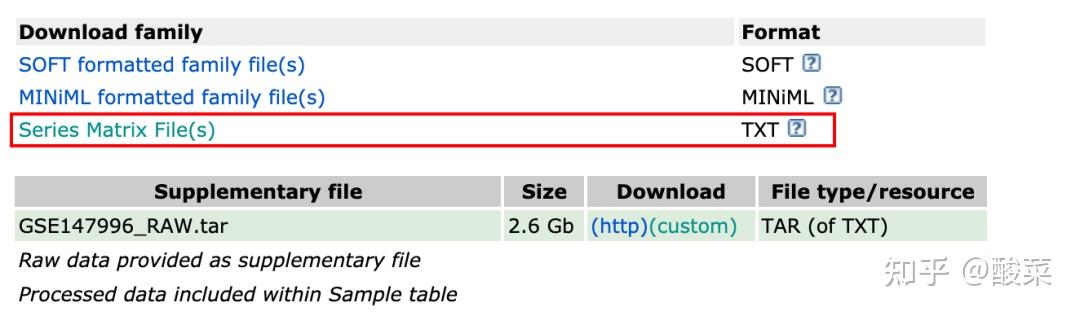 1. 数据集对应的series_matrix(数据集页面)(内部含有表达谱和分组信息(分组信息如何看可以看“如何找到自己需要数据”中的芯片数据部分))