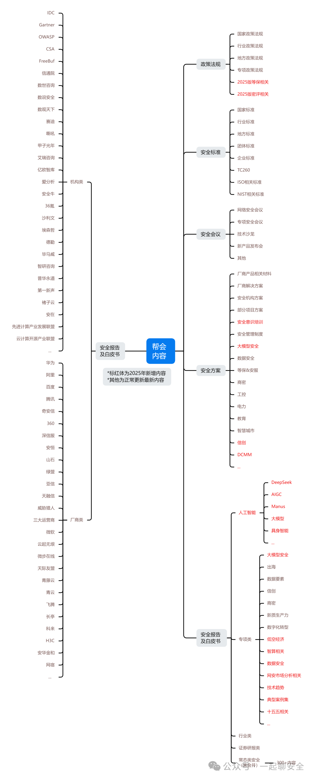 「一起聊安全」公众号及帮会致力于网络安全材料汇总与分享,围绕网络安全标准、安全政策法规、安全报告及白皮书、安全会议、安全方案、新技术等方向,与FREEBUF知识大陆共建【一起聊安全】帮会,目前相关内容已有8000+,安全标准涵盖国标、行标、团标等,包括等保、关基、商密、数据安全、云计算、物联网、工业互联网、移动安全、风险评估、安全攻防等30+方向内容,覆盖最新安全政策法规、安全报告及白皮书等,为网安人提供最新最全资料。