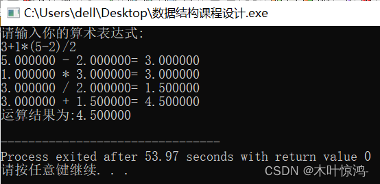 - 因为时间问题,只能做出表达式基本运算,在以后的时间里,我会改善这个计算程序,让它能计算更复杂的表达式,如加上 sin , cos 时的运算。
