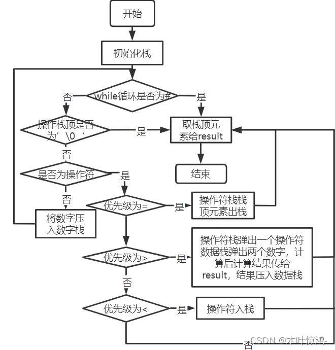 - 首先读取算数表达式读到数字处理数字,读到操作符停止处理数字,将处理好的数字存放在num中,并且返回当前指针所指的操作符。