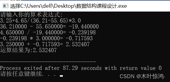 若上述处理过程中没有发现错误,则认为该表达式合法,并打印处理结果。
