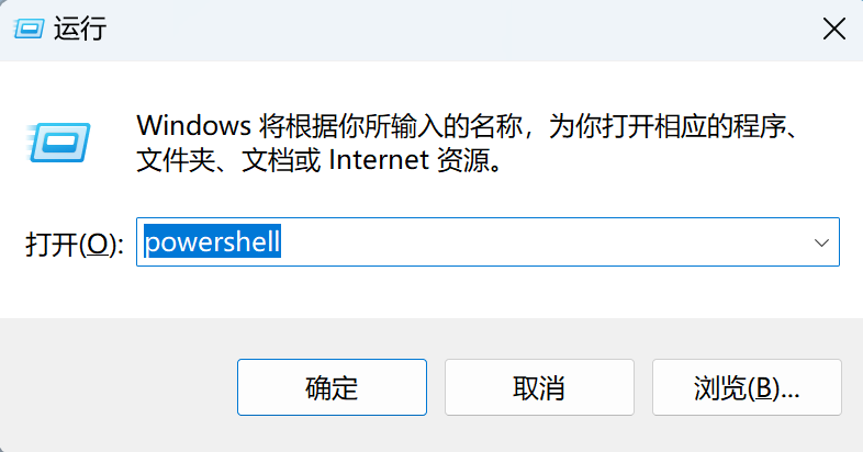 按 Win + R,唤起运行窗口,然后输入 powershell并回车: