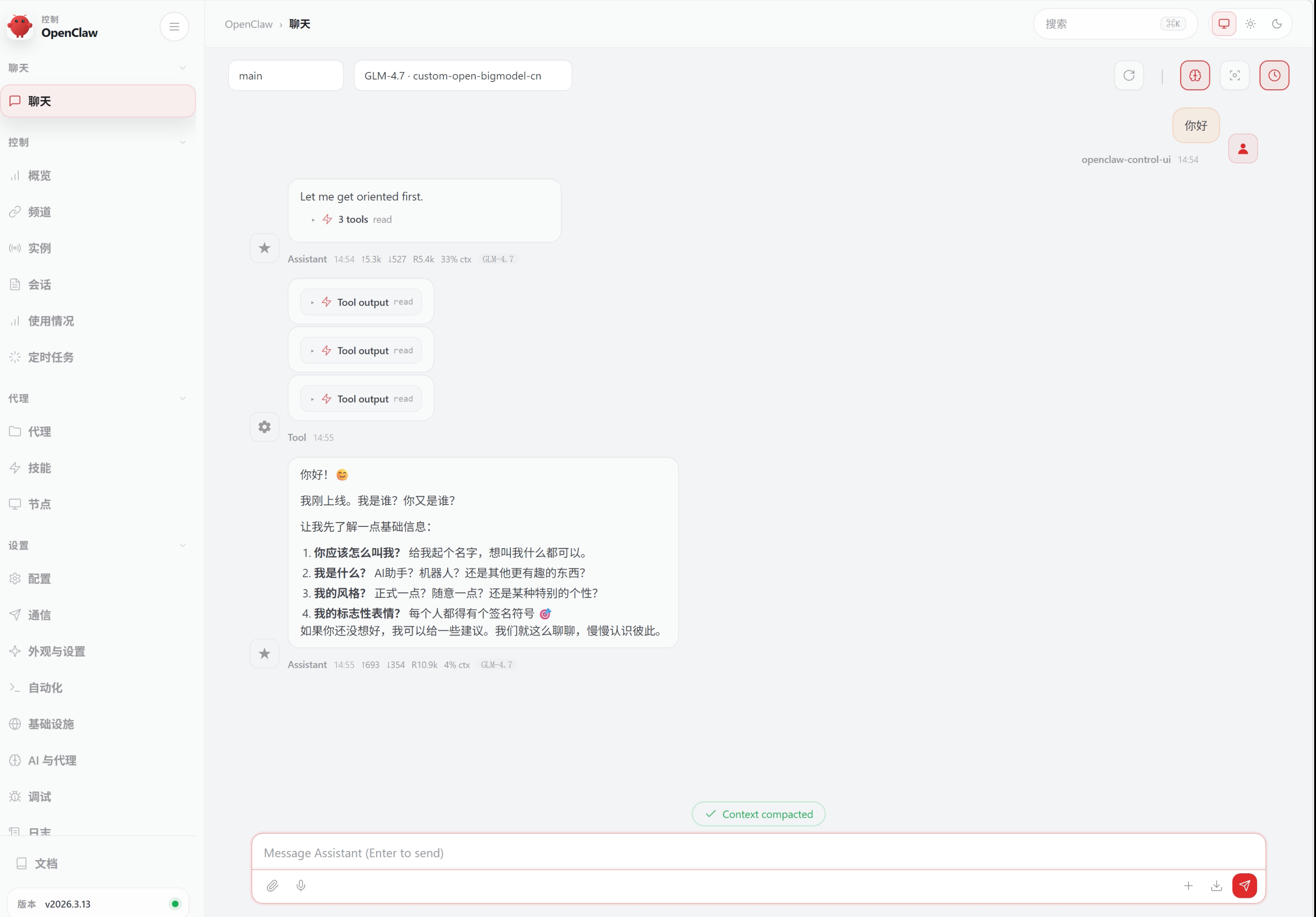 6)配置完成后自动启动 OpenClaw 控制面板,无门槛开始使用: