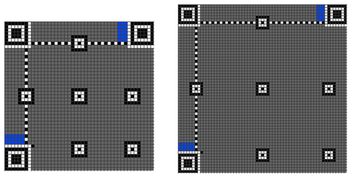 然后是填接我们的最终编码,最终编码的填充方式如下:从左下角开始沿着红线填我们的各个bits,1是黑色,0是白色。如果遇到了上面的非数据区,则绕开或跳过。