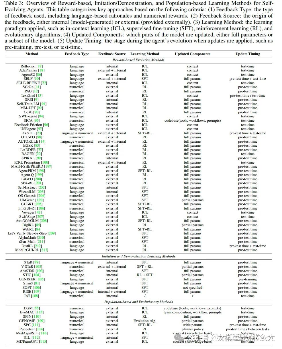 - 如何进化?(通过奖励、反馈、记忆、搜索等机制)