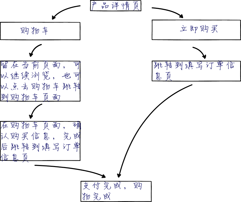 通过购买流程可以看出,立即购买的优势在于操作步骤少,看中的产品立即就可以跳转到填写订单的页面完成购买,缺点在于:1.一次只能购买一件产品;2.这个功能不利于提高客单价,因为点了立即购买按钮就意味着结束了挑选商品的流程,进入了购买流程,那么用户在购买完成之后还能不能再继续购买其他的产品就很难说了。